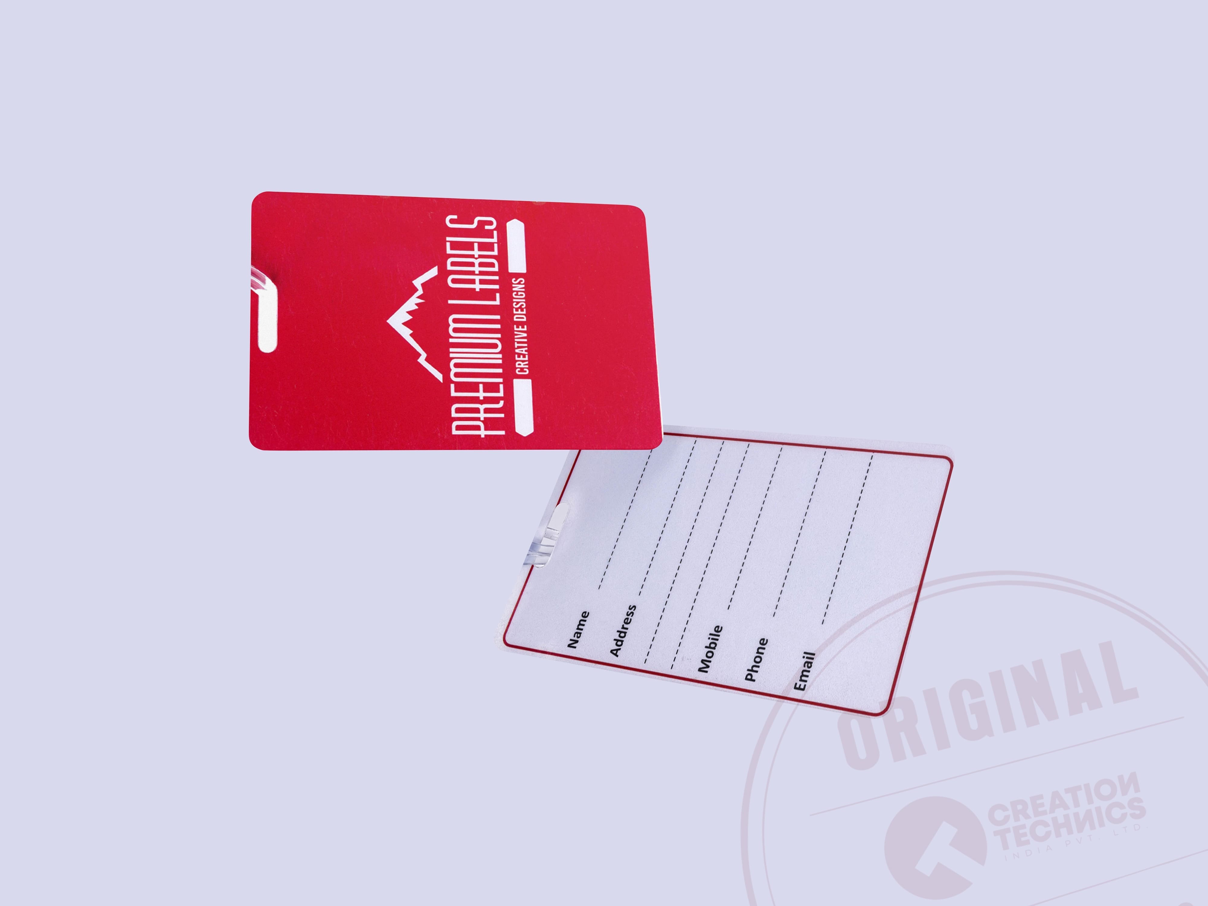 Creation Technics India offers a wide range of luggage tags which are plastic cards with personal information features and are used by frequent travellers and help in avoiding security lapses. It contains traveller personal information on it. These are available in various thickness, size and colour.